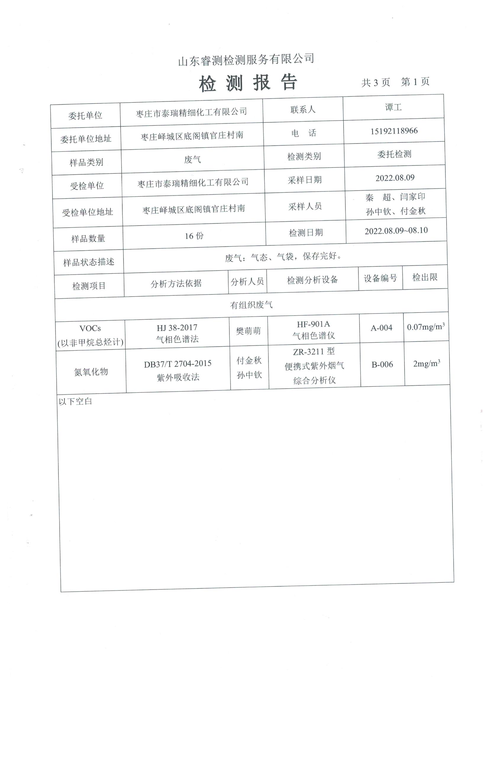 2022年第三季度檢測報告