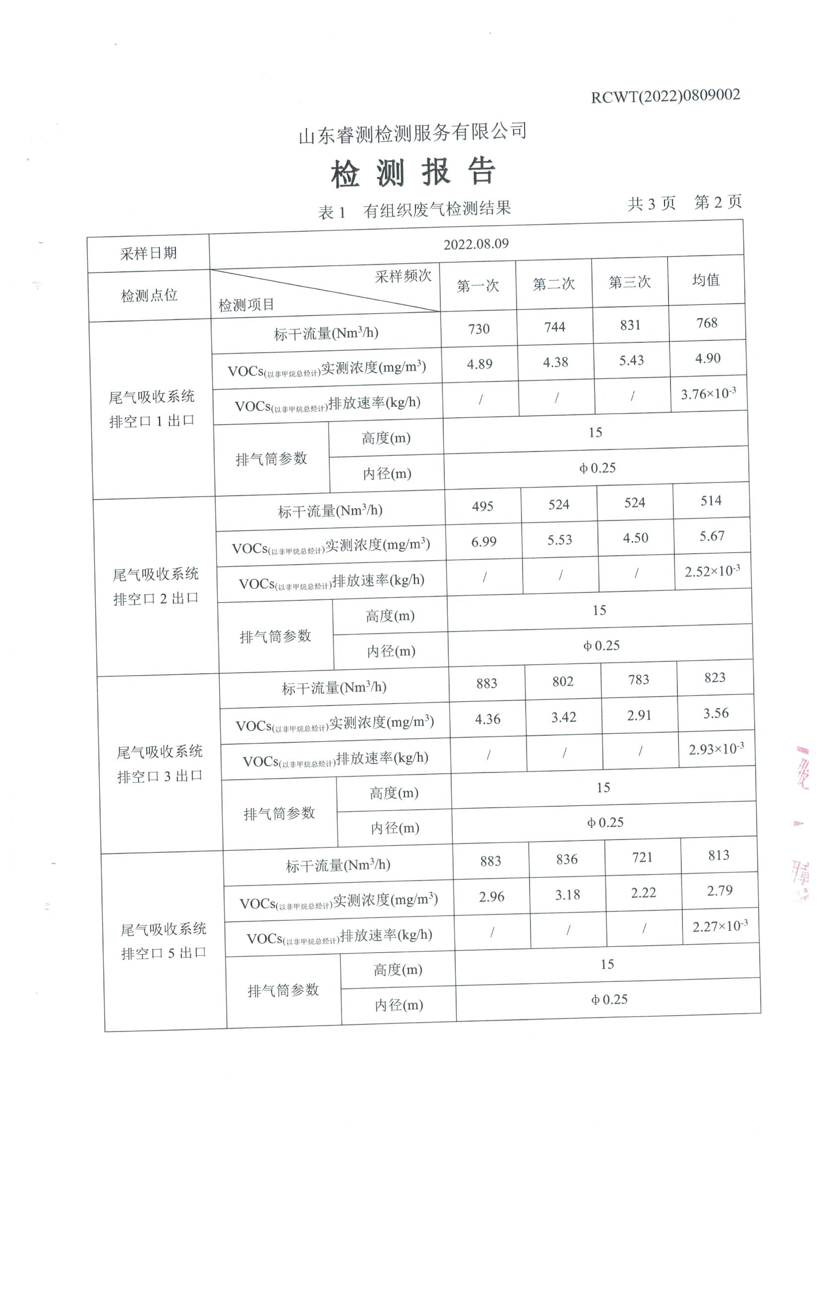 2022年8月份自行檢測報告