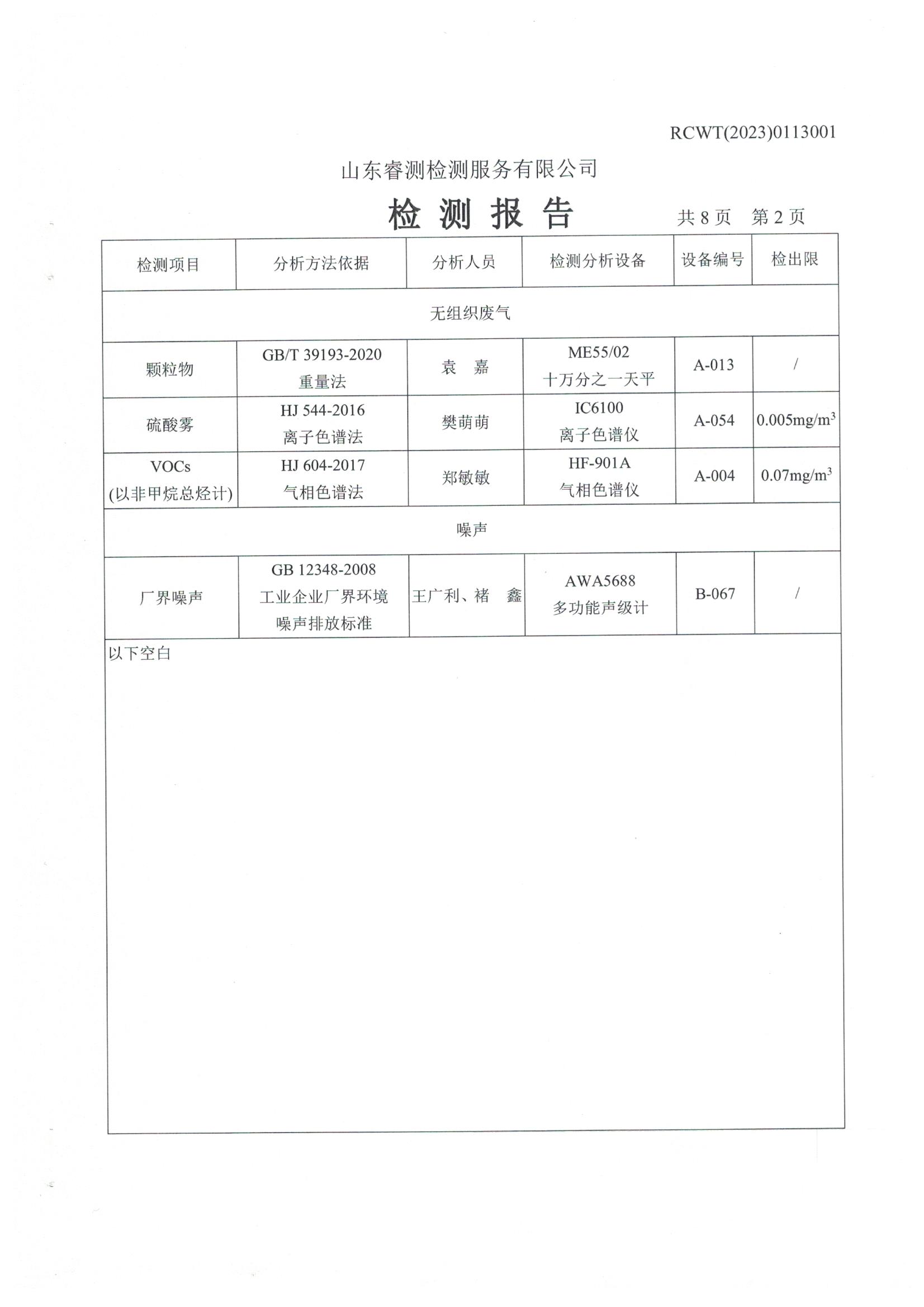 2023年第1季度檢測(cè)報(bào)告