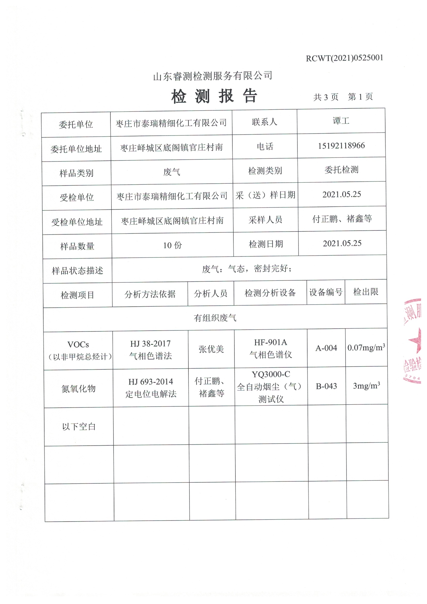 2021年4月份及季度自行檢測報(bào)告