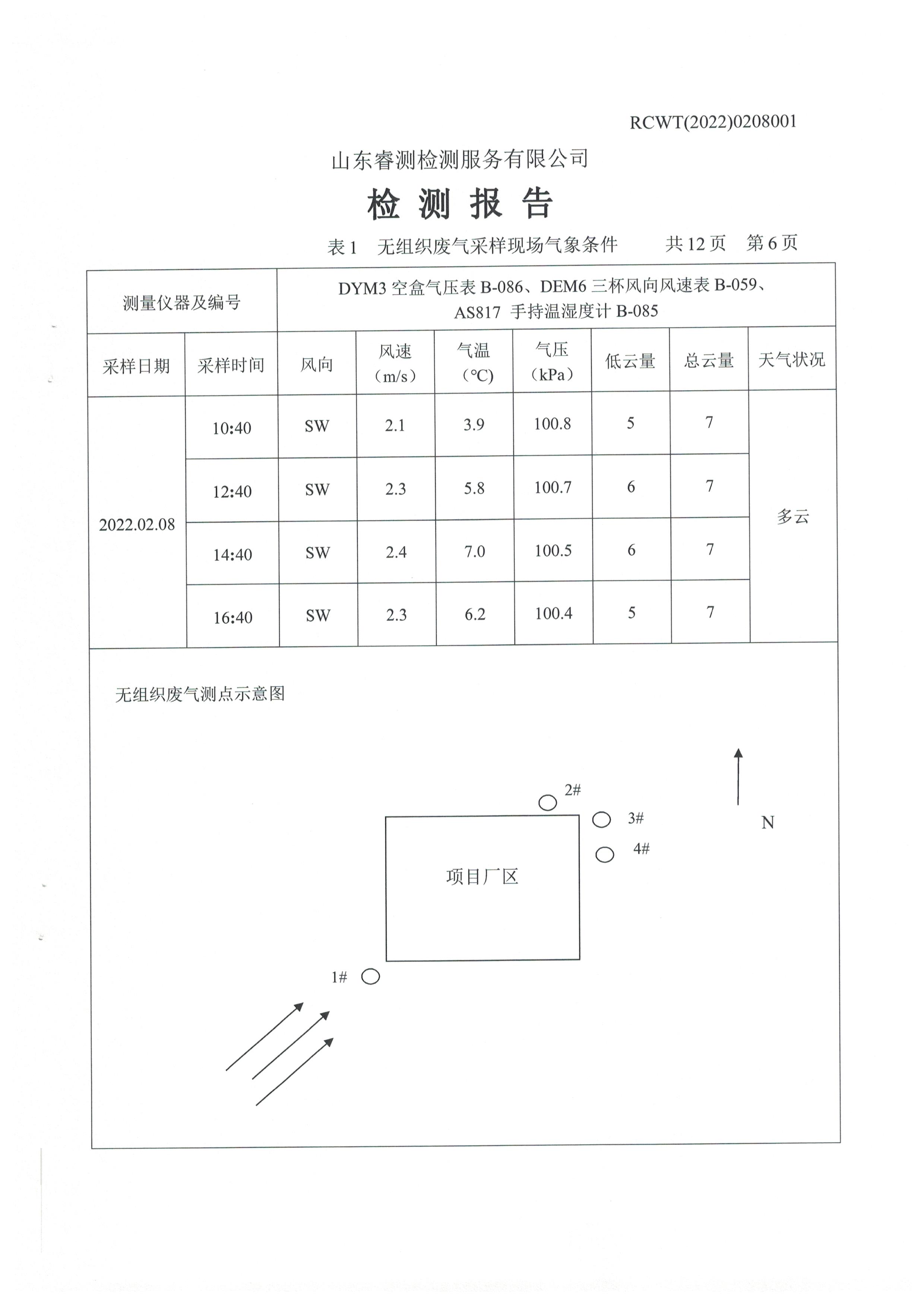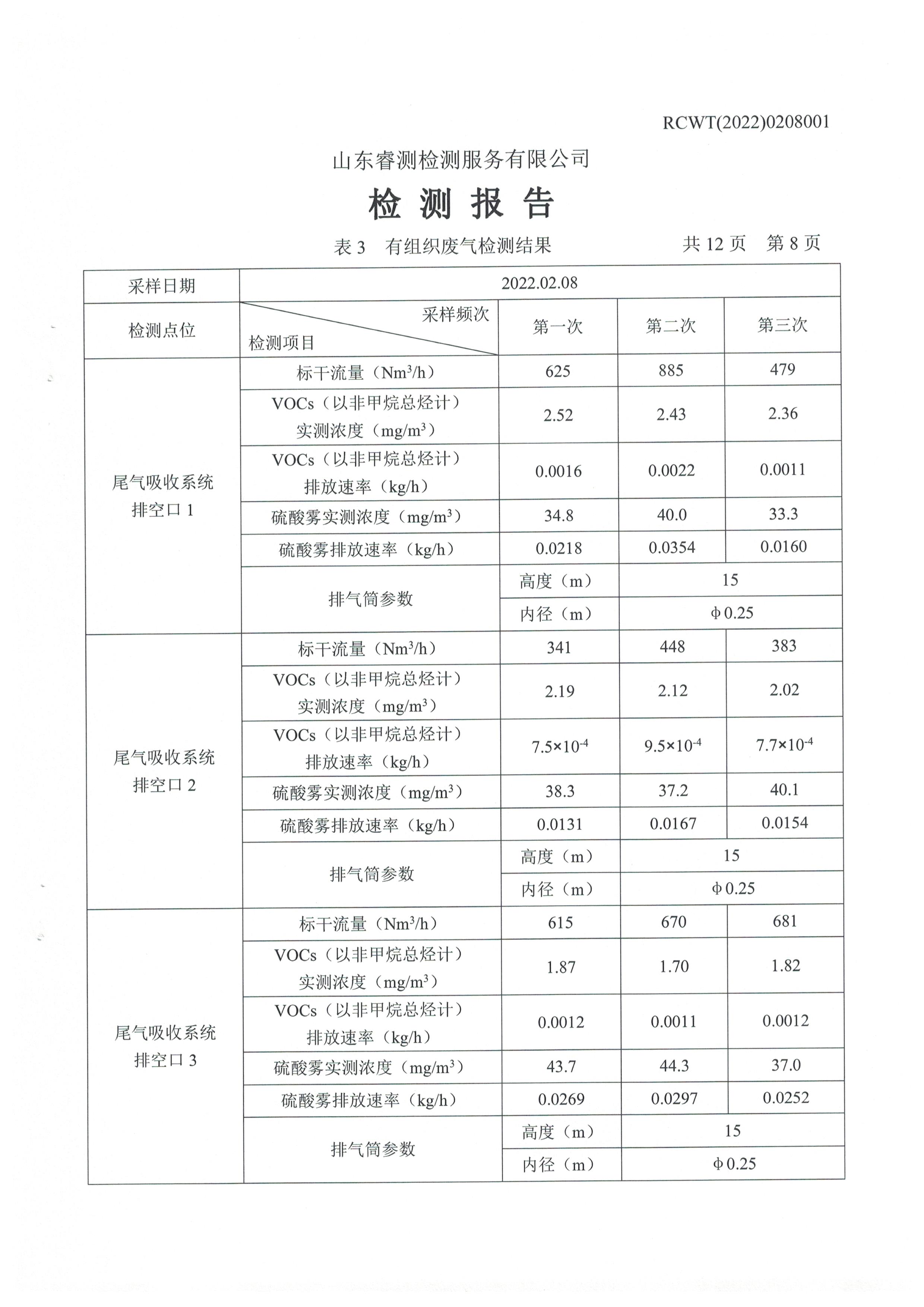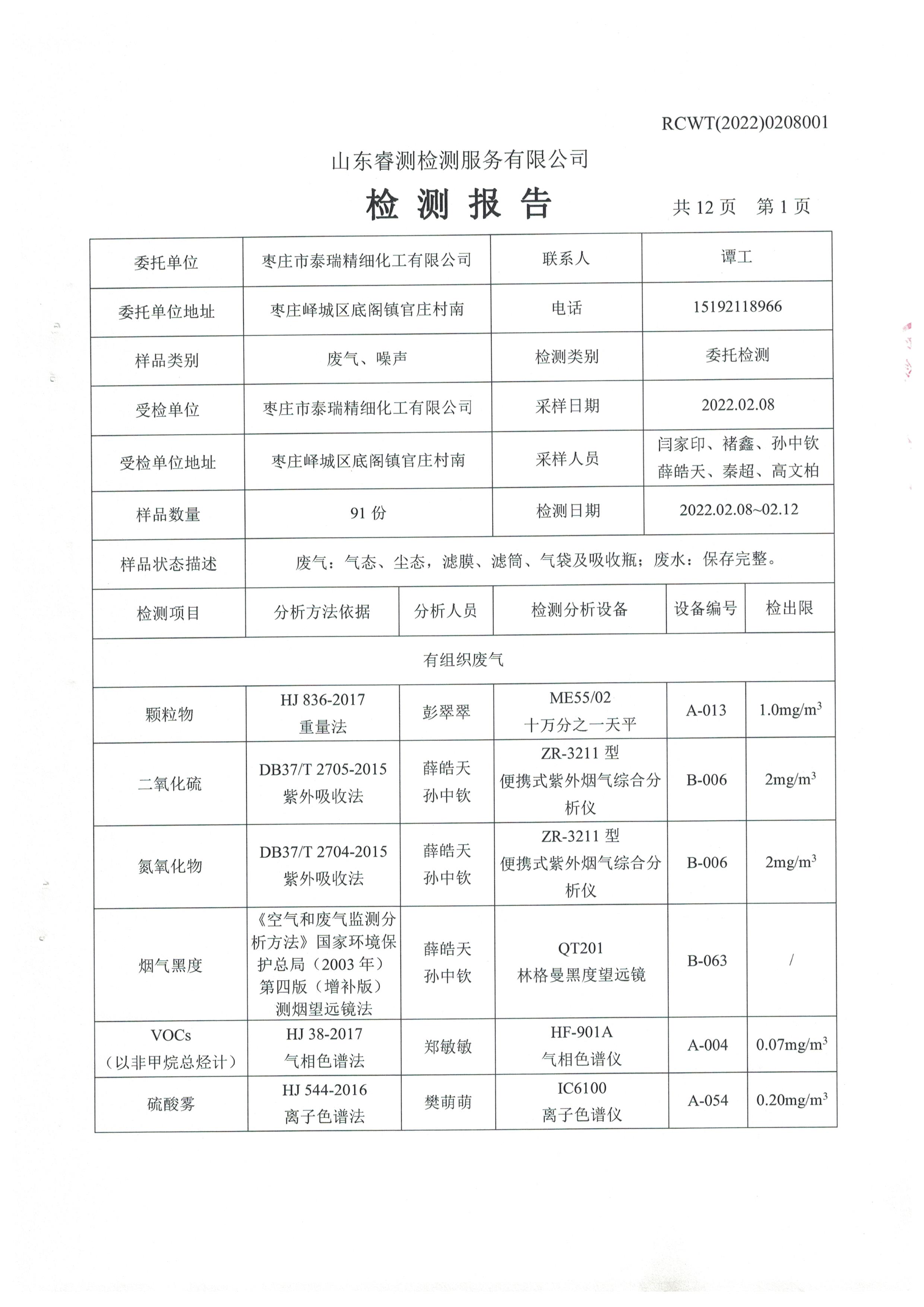 2022年2月份及第一季度自行檢測(cè)報(bào)告