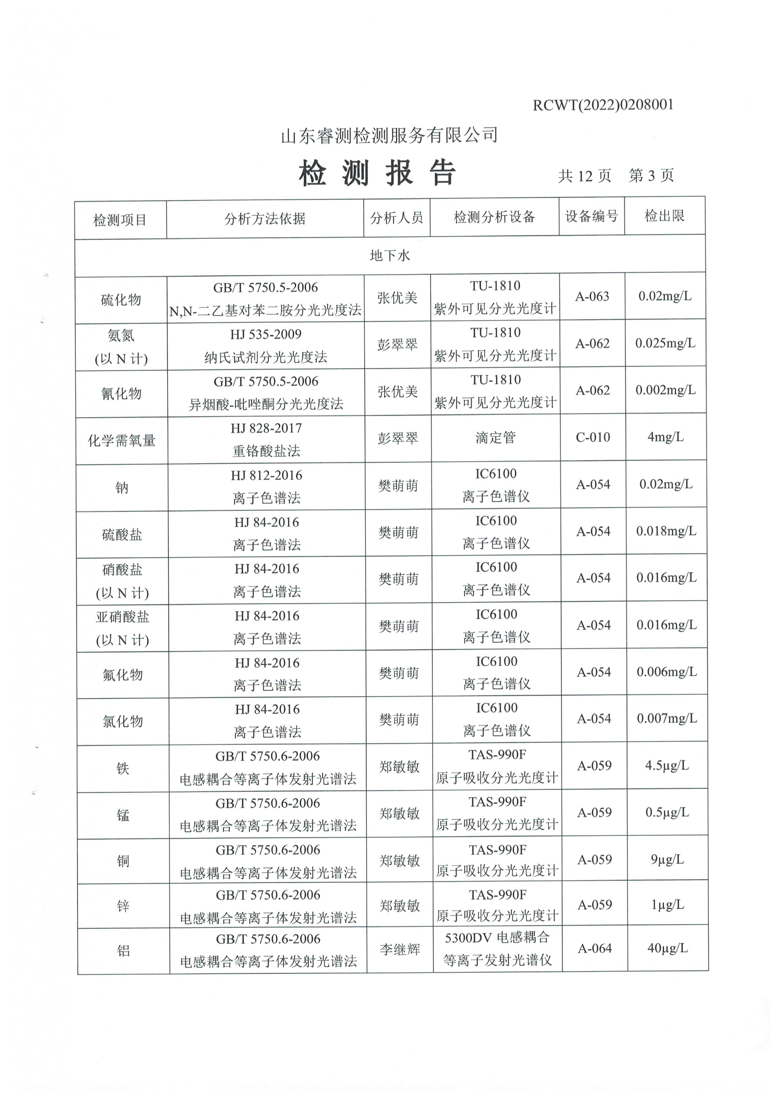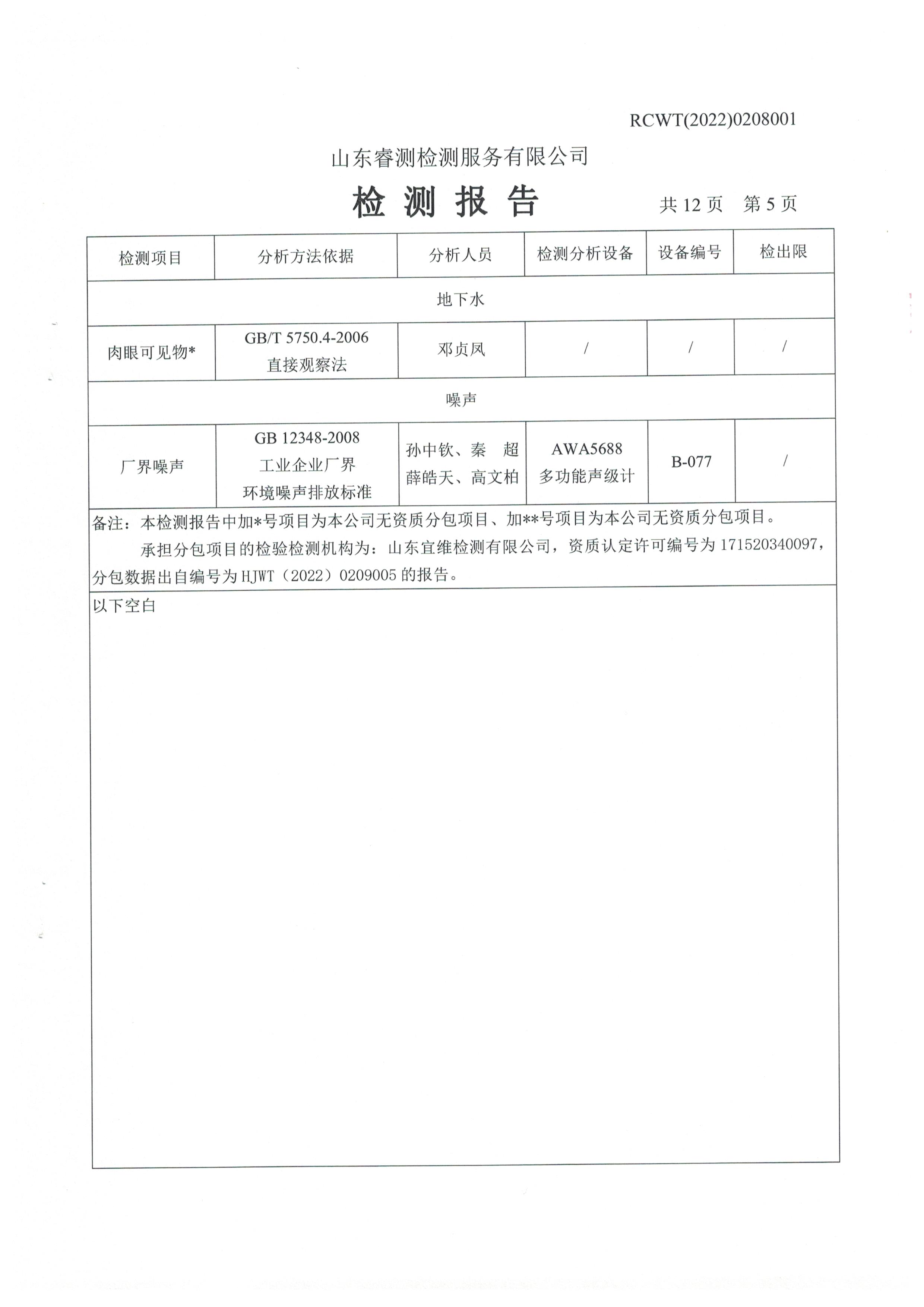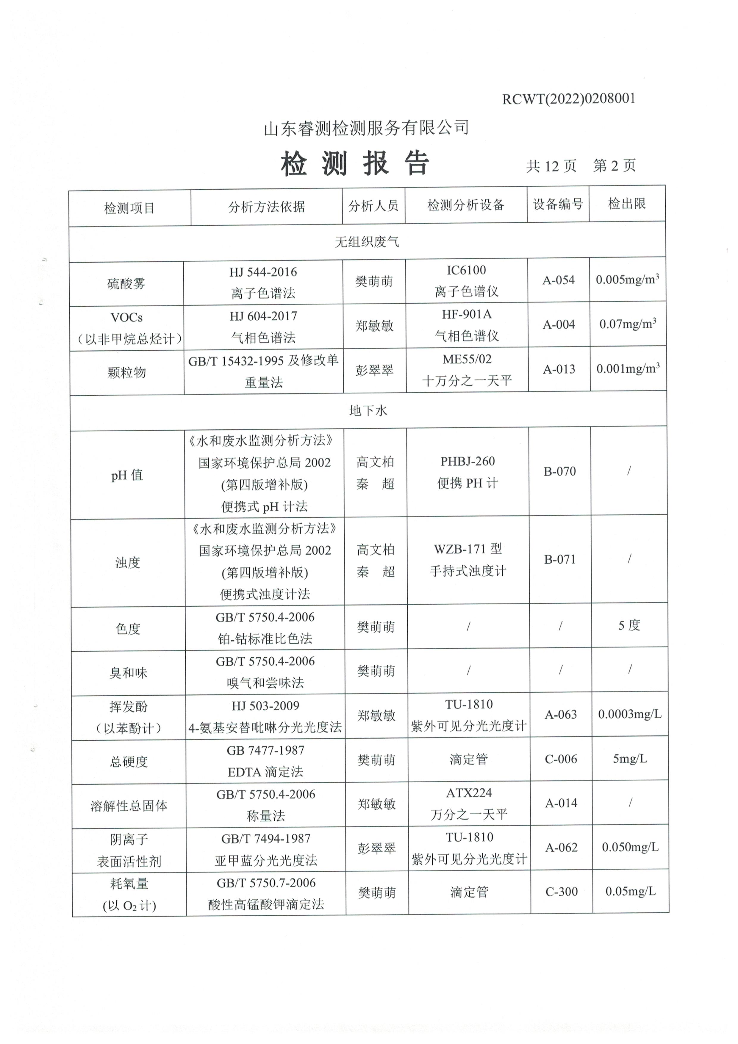 2022年2月份及第一季度自行檢測(cè)報(bào)告