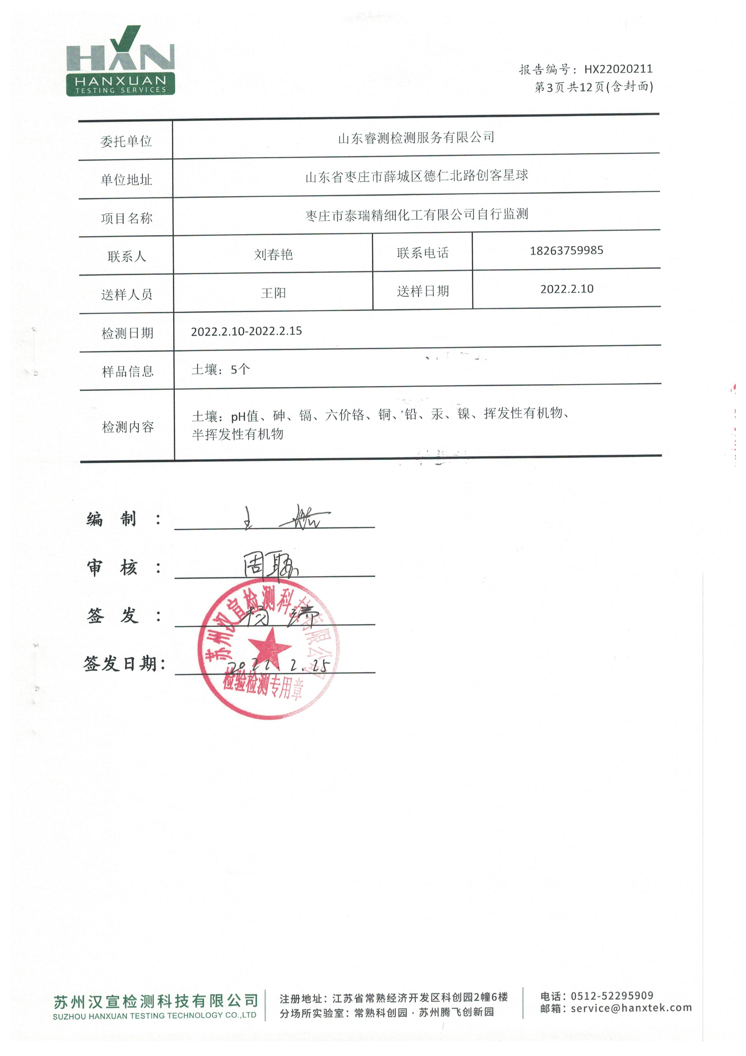 2022年2月份及第一季度自行檢測報告
