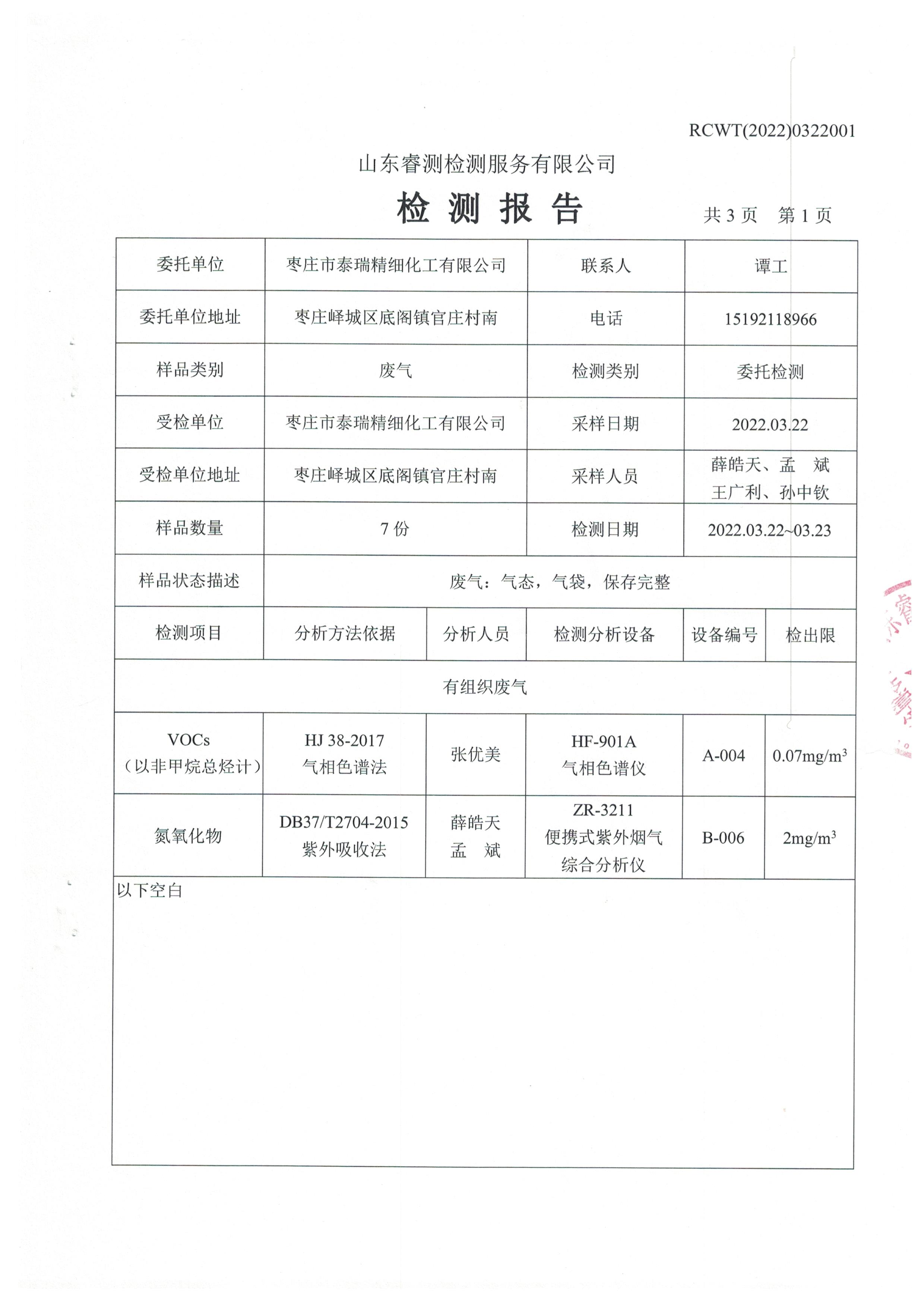 2022年3月份自行檢測報(bào)告