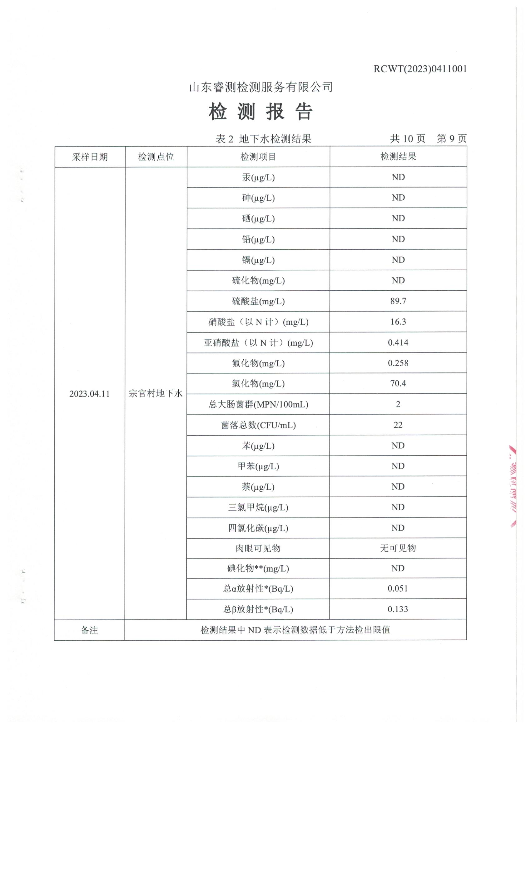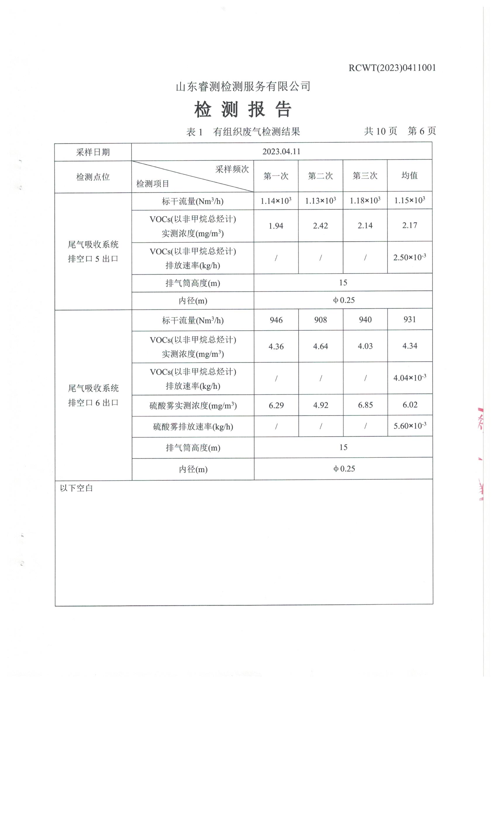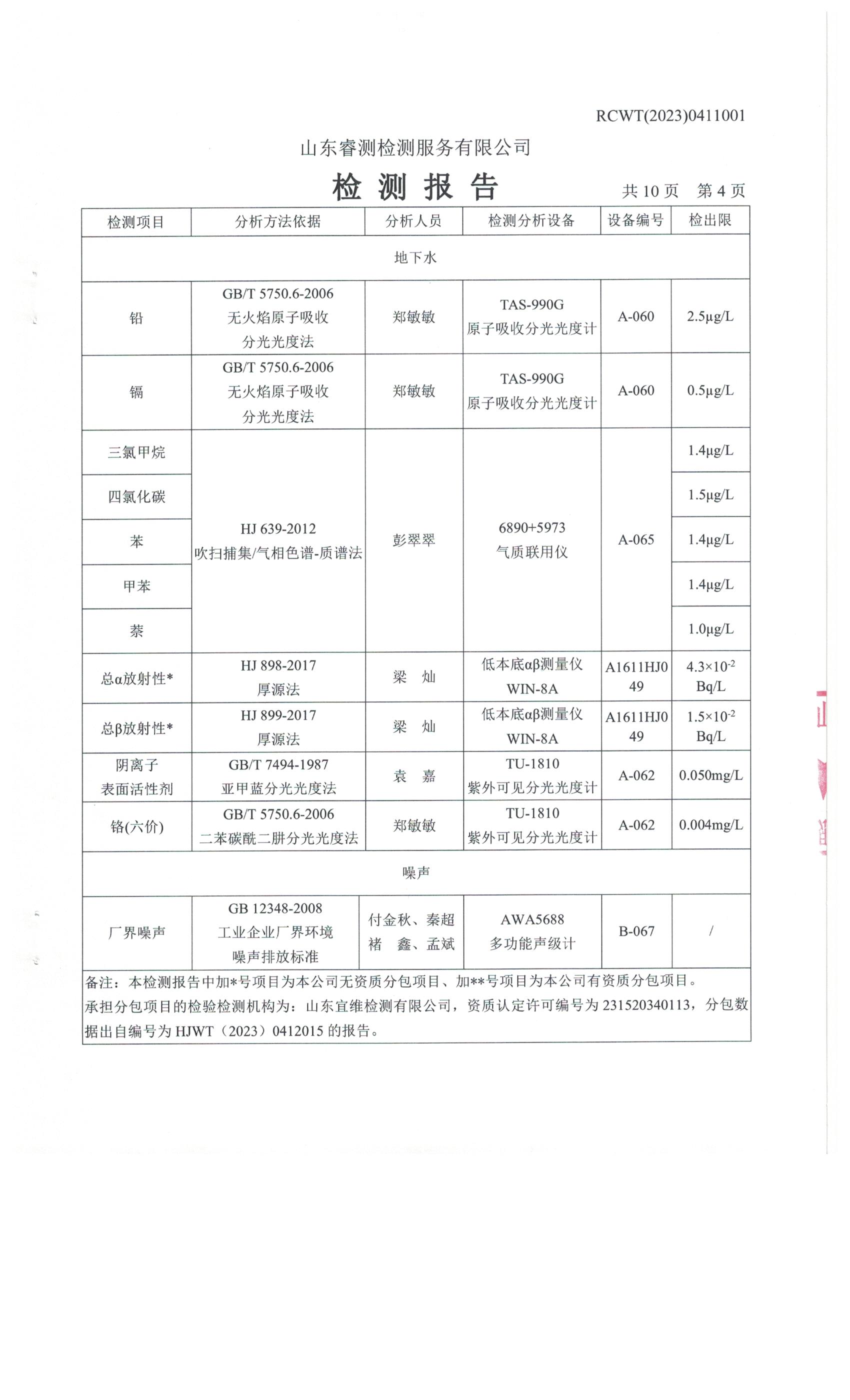 2023年第2季度(4月份)檢測(cè)報(bào)告