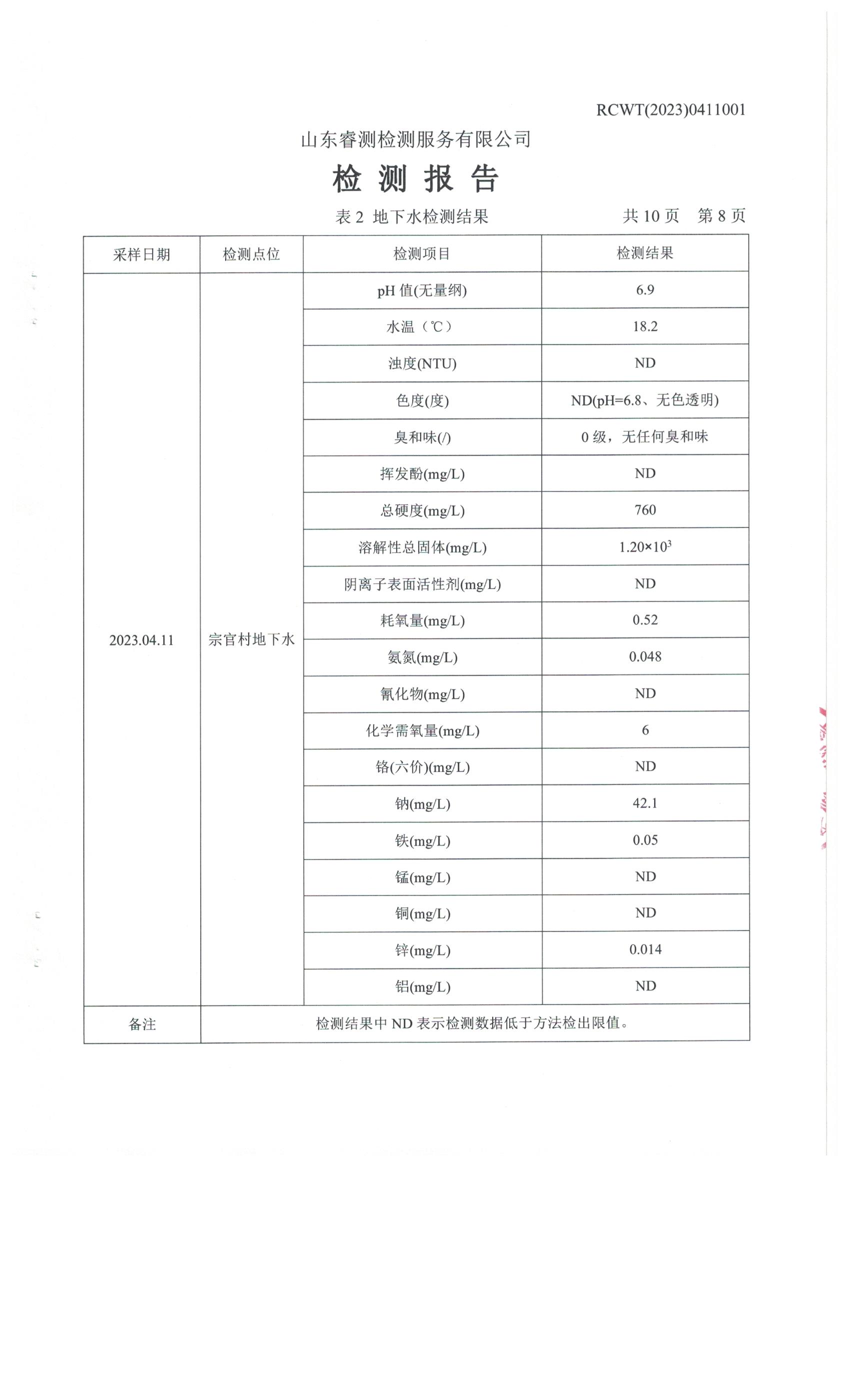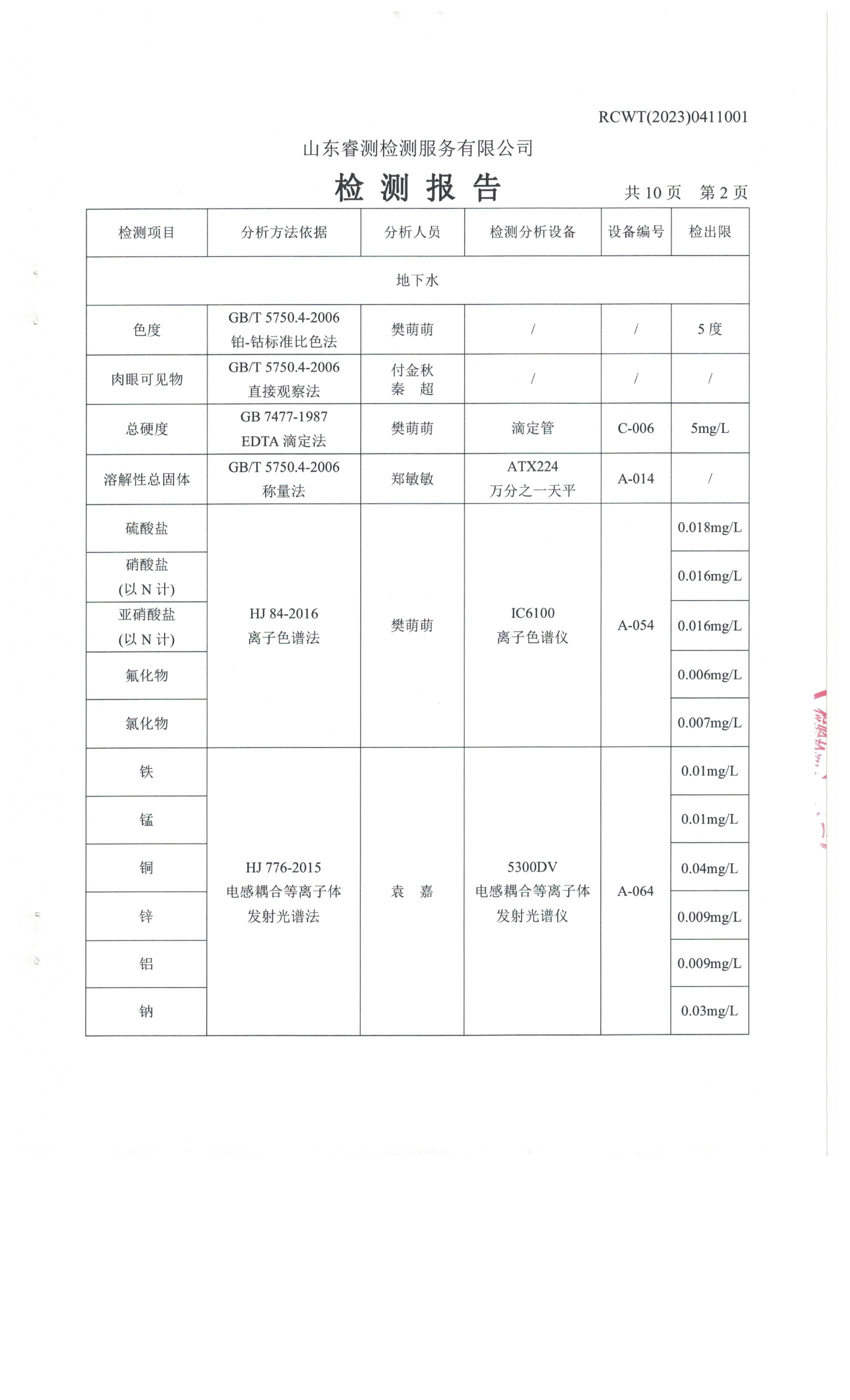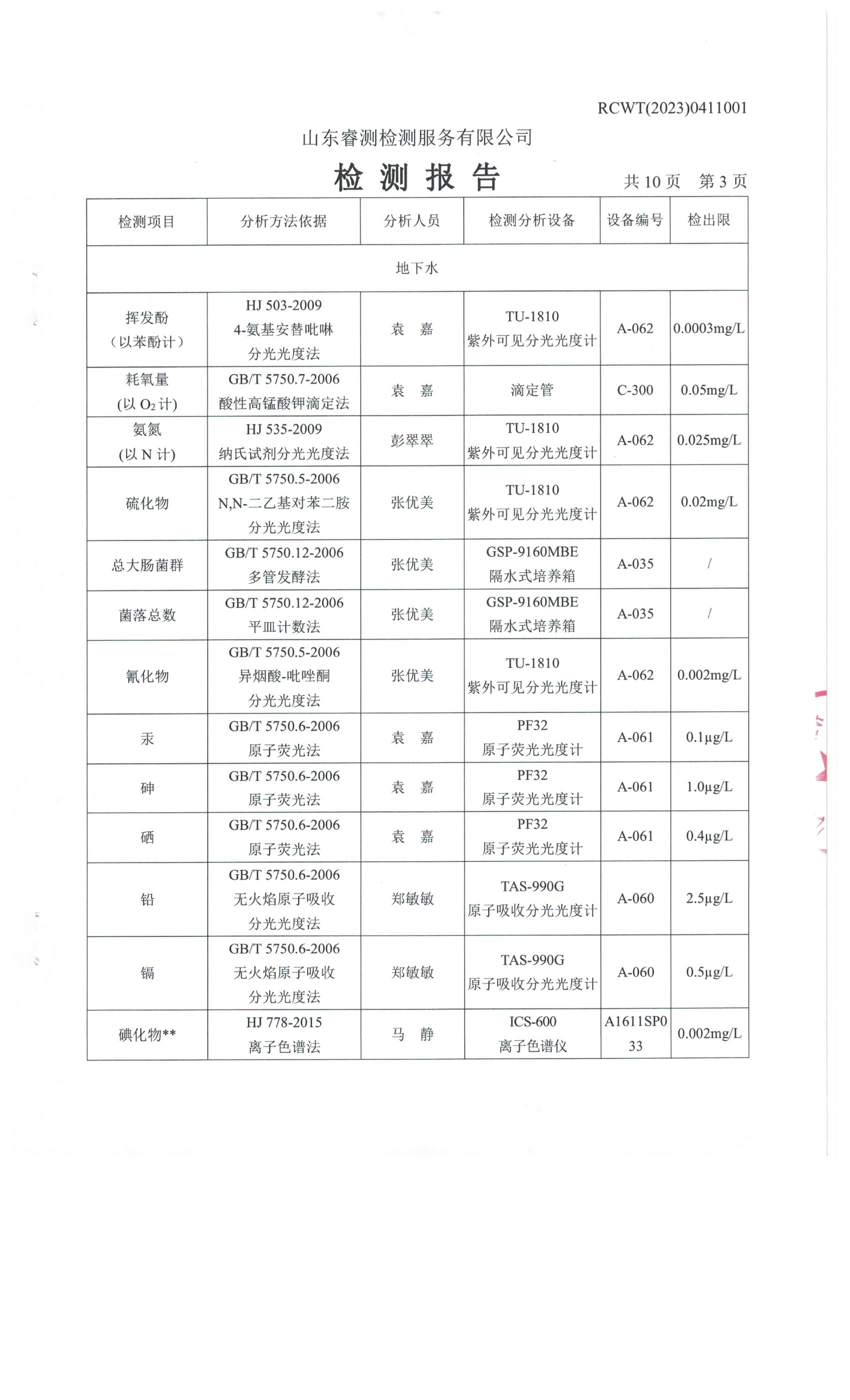 2023年第2季度(4月份)檢測(cè)報(bào)告
